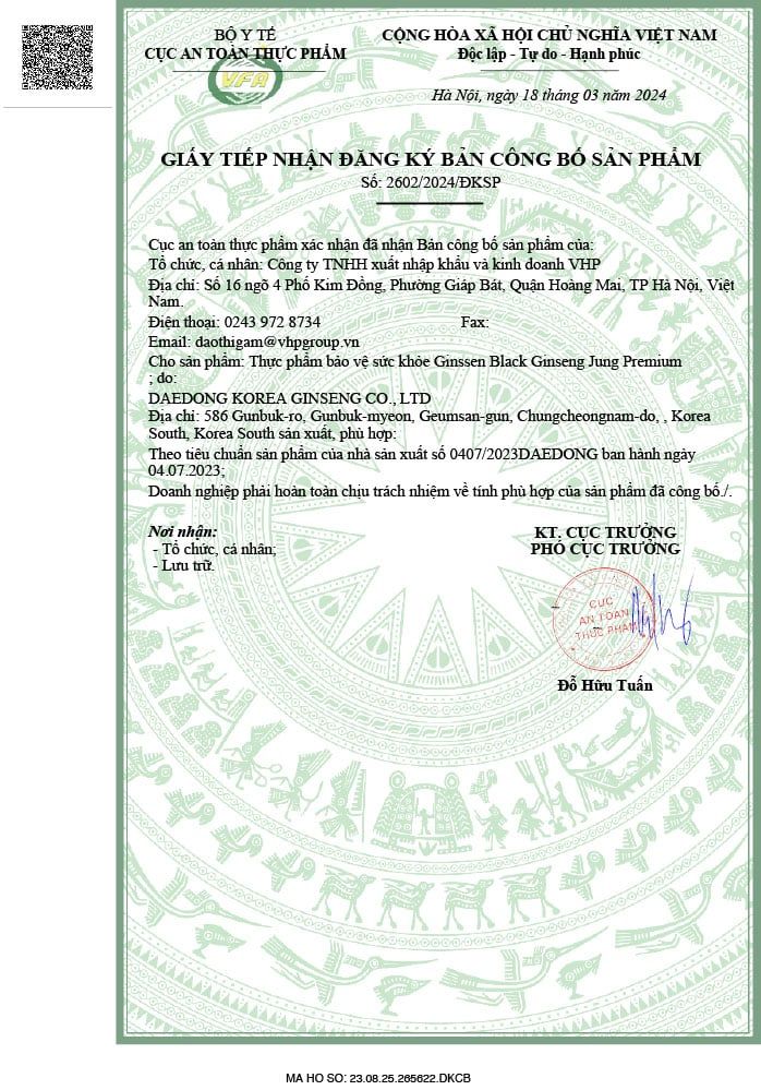 - Chiết xuất hắc sâm (hồng sâm hàn quốc) (thành phần rắn 6%, hàm lượng saponin 7mg/g, Hàn quốc) chiếm 20%.