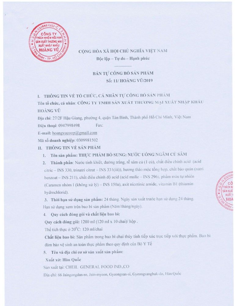 Sâm củ Hà Quốc trên 3 năm tuổi, Đường, Axit Citric, Trisodium citrate, Thảo dược, Sodium benzoate, Axit Malic, Caramel, Niacinamide, Vitamin B1