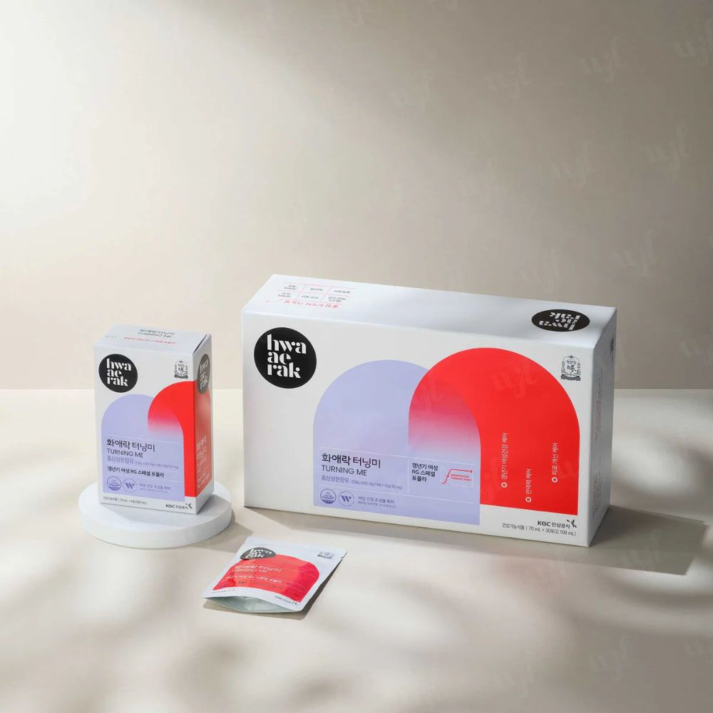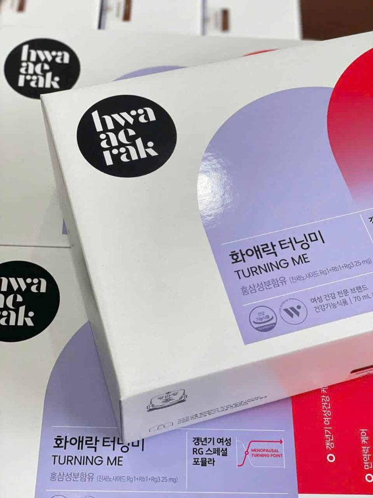 Chiết xuất hồng sâm Hàn Quốc 6 năm tuổi 4% (thành phần chất rắn 60%, Ginsenoside Rg1 + Rb1 4,5mg/g; tỷ lệ pha trộn hồng sâm : hồng sâm củ 75%, hồng sâm vụn 25%), Hỗn hợp chiết xuất thảo dược (Cynanchum Wilfordii Radix, Phlomis Umbrosa Turcuz, Angelia Gigas N), Nước tinh khiết, Agave Syrupt, Fructooligosaccharide, Cyclodextrin Syrup, Calcium organic acid lên men từ vỏ sò (Hàn Quốc), Đường lactose (Mỹ), Bột chiết xuất đậu nành, Hương thảo mộc (tự nhiên), Bột chiết xuất quả nam việt quất, Magnesium Chloride, Vitamin C, Vitamin B6 hydrochlorride, Vitamin B2 phosphate ester natrium, Acid folic, Hỗn hợp Arabian gum, đường Saccharose, tinh bột bắp, Glycerin fatty acid ester, Vitamin D3, Vitamin E.