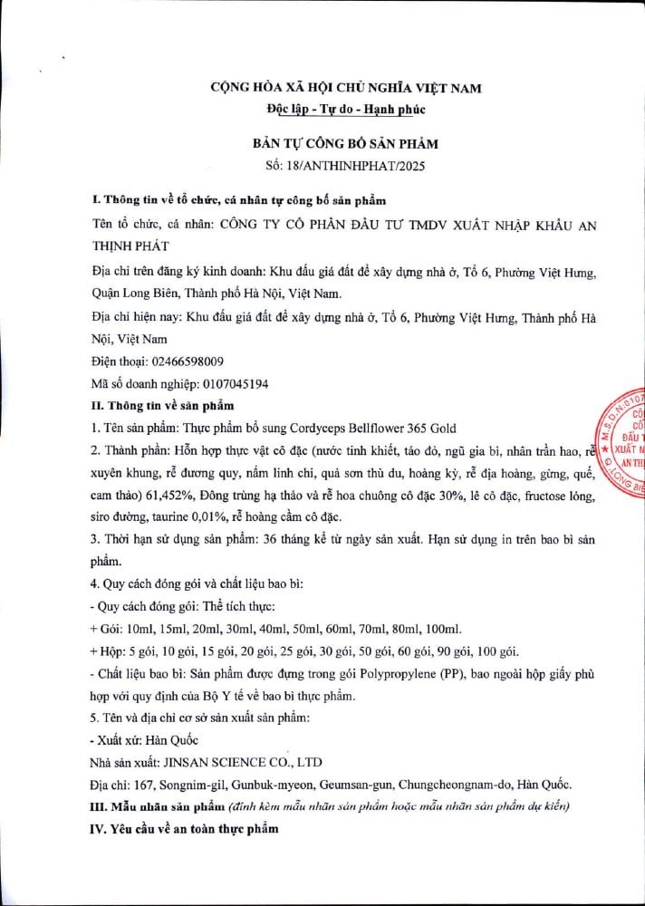 - Đông trùng hạ thảo và rễ hoa chuông cô đặc (30%).
