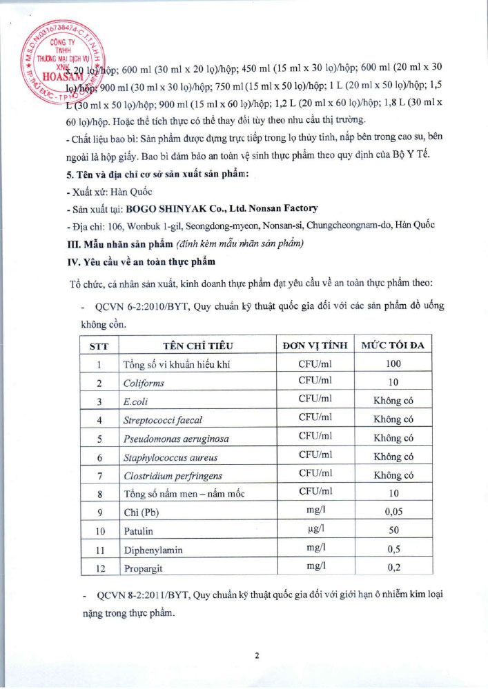 Chiết xuất hồng sâm (Thành phần chất rắn hơn 60%. Saponin hồng sâm hơn 70mg/g. Hàn quốc) 0,3%) Chiết xuất thực vật hỗn hợp (Chỉ thương thuật “Hàn quốc", Địa hoàng "Hàn quốc", Vỏ cam, Cnidii rhizome, quả Sơn thù, Long nhãn, Quế, Cam thảo, Ngũ vị tử, Chiết xuất Đông trùng hạ thảo(Cordycepssinensis) (Thành phần chất rắn hơn 0,3%: PaecilomycesJaponica) 32%. Xiro Maltito, Táo tàu, Natri Citric, Phụ gia tạo đặc Xanthan gum, Vitamin B hốn hợp, (Thiamin dilaurylsulfate và dextrin ), A - xít Citric, glyxin, Chất bảo quản Natri benzoate, Cỏ ngọt